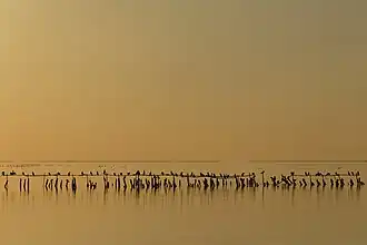 The lake is also an important place for rest and food for migratory birds, and it also has a population of the greater flamingo.[1] Because of its importance for wild birds, the Étang de Vaccarès with its surrounding wetlands has been protected as a nature reserve since 1927, and in 1972 it was incorporated into the Parc Régional de Camargue.