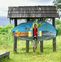 180° Meridian, Taveuni, Fiji. The man pictured is facing southward.