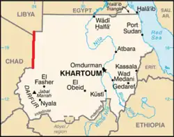 Part of the border between Libya and Sudan is defined by the meridian, as is a large section of the border between Chad and Sudan.