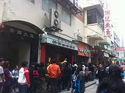 The family-run Shan Loon Tse Kee Fish Balls Restaurant (山窿謝記) served Chiuchow-style fish ball with soup noodles for 65 years until it closed on 31 March 2012 due to rising fish prices and staffing problems.[10] The Tse Kee Restaurant served famous guests such as Christopher Patten, former Governor of Hong Kong (1992-1997); Donald Tsang, former Chief Executive of Hong Kong (Head of the Government) (2005-2012); Henry Tang, former Chief Secretary for Administration of Hong Kong (2007-2011); Tony Leung, a famous actor; Chua Lam, a well-known food critic; and Eason Chan, a celebrated singer. Tse Kee Restaurant helped make "Aberdeen Fish Balls Noodles Culture" (香港仔魚蛋粉) well-known.