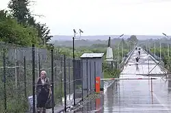 The Abkhazia–Georgia separation line is a de facto boundary set up in the aftermath of the War in Abkhazia and Russo-Georgian War, which separates the self-declared Republic of Abkhazia from the territory controlled by the Government of Georgia. Republic of Abkhazia, and those states that recognise its independence, view the line as an international border separating two sovereign states, whereas the Georgian government and most other countries refer to it as an 'Administrative Border Line' within Georgian territory.[1] The Georgian government views Abkhazia as a Russian-occupied Georgian territory and designates the de facto boundary as an occupation line in accordance with the Georgian "Law on Occupied Territories of Georgia". The Constitution of Georgia recognizes Abkhazia as autonomous within Georgia, therefore the line corresponds to the 'Administrative Border' of the Autonomous Republic of Abkhazia within Georgian territory.[1]