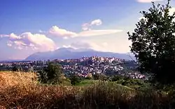 The name Abruzzo, according to the most accredited hypothesis first proposed by Renaissance historian Flavio Biondo in Italia Illustrata, derives from Aprutium as a popular evolution of (ad) Praetutium, meaning "land of the Praetutii", an ancient Italic people that lived in the area of present-day Teramo.[13] According to other hypotheses, the name could also derive from abruptus (Latin for "steep" or "precipitous").[14][15][16]