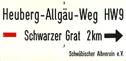 The highest mountain in the Adelegg range is the Schwarzer Grat, whose summit is located on Württemberg soil, just a few metres northwest of the Bavarian border, in the province of Tübingen. This peak and other mountains and hills, together with their foothills within the Adelegg range, and the landscape unit of Adelegg - which is higher in places –are sorted below by height in metres (m) above sea level (NN)[1]; (BW = Baden-Württemberg; BV = Bavaria):