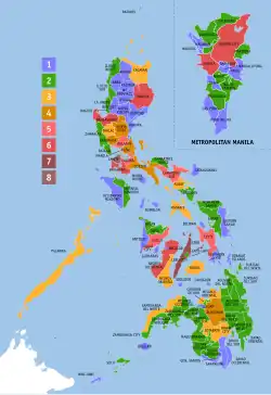 The Philippines is divided into four levels of administrative divisions, with the lower three being defined in the Local Government Code of 1991 as local government units (LGUs).[1] They are, from the highest to the lowest:
