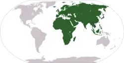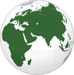 Afro-Eurasia (also Afroeurasia and Eurafrasia) is a landmass comprising the continents of Africa, Asia, and Europe.[1][2] The terms are compound words of the names of its constituent parts. Afro-Eurasia has also been called the "Old World", in contrast to the "New World" referring to the Americas.