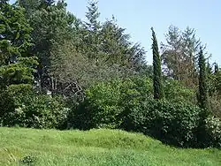 The highest peak of the town of Albano is the Colle dei Cappuccini, located at 615 m above sea level. From the hill, which houses a pine forest adjacent to the Capuchin Monastery, there is a remarkable overview of Lake Albano, Agro Romano and Monte Cavo.[7] The historic center of Albano has a maximum gradient of 11%, or 47 metres, 435, taking into consideration the distance between the Cathedral of San Pancrazio (384 m asl) and the St. Paul's Church (431 m asl). Other altitudes through the center of town are Villa Altieri, at kilometre 25 of the State Road 7 Via Appia (363 m asl) and the Church of Stella (391 m asl).[8] The hill town of Castel Savelli is 280 m above sea level, while the underlying fraction of Pavona is built at 110 m above sea level. The village of Cecchina at the railway station is located at 212 m above sea level.[7]