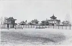Following the Treaty of Kyakhta in 1727 each side built a trading post on its side of the border. Construction began in 1730. It was perhaps 500 to 700 feet south of Kyakhta, upstream on the small Kyakhta River. The town was square, with wooden walls and, after 1756, a three-foot wide ditch. Each wall had a gate which led to two major streets which intersected in the center. Each gate had a 25-foot watchtower manned by members of the Mongol garrison. The main avenues were about 25 feet wide, but the other streets and alleys were narrow. The larger houses had interior courtyards where trading was done. These courtyards were generally better kept than the public areas. The southwestern quarter of town was occupied by "Bukharans" as the Russians called traders from Central Asia. Women were forbidden to live in the town, apparently to keep Chinese merchants from becoming permanent residents. The rule was evaded but still in force in 1908. The post was administered by the 'Dzgarguchei' who was replaced by the Lifanyuan every two years. For some purposes the Dzarguchei dealt with the Tushetu Khan in Urga who was partly supervised by a Manchu resident.