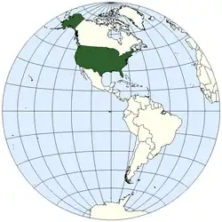 - United States of America—a federal republic in North America founded in 1776 and comprising 50 states (one of which, Hawaii, is not considered to be located in North America) and one federal district (the District of Columbia), with several outlying territories of varying affiliation; commonly referred to as the U.S. or simply America.