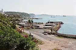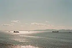Amur Bay (Russian: Амурский Залив, Amurskiy Zaliv), a major bay within Peter the Great Gulf of the Sea of Japan, has an approximate length of 65 kilometres (40 miles), a width of 10 kilometres (6.2 miles) to 20 kilometres (12 miles), and a depth of 20 metres (66 feet).[1] It is part of a larger bay formed with Ussuri Bay, to which it is connected by the Eastern Bosphorus, and from which it is separated by the Muravyov-Amursky Peninsula and by the Eugénie Archipelago. The Amba River, Razdolnaya River, Narva River, and Barabashevka River all flow into Amur Bay.