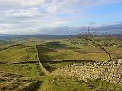 Hadrian's Wall near Greenhead. The Wall has never formed the actual Anglo-Scottish border.