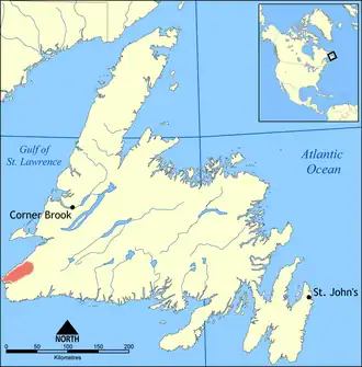 ![]() The Anguille Mountains highlighted on the west coast of Newfoundland | |