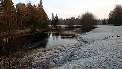 The southeastern corner of the hilly Aegviidu is home to the popular Nelijärve lakes, while many other lakes dot the landscape east of Aegviidu on the lands of the Põhja-Kõrvemaa Nature Reserve and the village of Jäneda, with Kivijärv, Venejärv, Ännijärv, and Aegviidu blue springs among them.[56] The Kaunismaa area in the village of Kuusemäe, between Kehra and Anija, is home to a collection of small lakes.[57] The village of Mustjõe is home to a large, flooded quarry, that operated between 1985 and 1992. The material extracted from the quarry was used for the construction of the second track of the Tallinn-Tapa railway.[58]