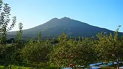 After the establishment of the Tokugawa Shogunate, the Nanbu ruled the Shimokita Peninsula and the districts immediately to the south of it. The area to the west of the Nanbu's holdings and to the north of the lands held by the Akita clan were all controlled by the Tsugaru clan, from their capital at Hirosaki. Work on Hirosaki Castle was completed in 1611, replacing Horikoshi Castle as the Tsugaru clan's fortress.[23] By 1631, the Tsugaru clan had solidified their control over their gains made during the Sengoku period.[27] Mutsu Province was struck by the Tenmei famine between 1781 and 1789, due to lower than usual temperatures that were exacerbated by volcanic eruptions at Mount Iwaki, near the Tsugaru clan's capital, Hirosaki, between November 1782 and June 1783.[28]
