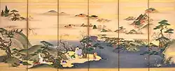 During the Sengoku period, the Nanbu clan collapsed into several rival factions. One faction under Ōura Tamenobu asserted their control over the Hirosaki Domain. His clan, originally the Ōura clan (大浦氏, Ōura-shi), was of uncertain origins. According to later Tsugaru clan records, the clan was descended from the noble Fujiwara clan and had an accent claim to ownership of the Tsugaru region on the Tsugaru Peninsula and the area surrounding Mount Iwaki in the northwestern corner of Mutsu Province; however, according to the records of their rivals, the Nanbu clan, clan progenitor Ōura Tamenobu was born as either Nanbu Tamenobu or Kuji Tamenobu, from a minor branch house of the Nanbu and was driven from the clan due to discord with his elder brother.[24] In any event, the Ōura were hereditary vice-district magistrate (郡代補佐, gundai hosa) under the Nanbu clan's local magistrate Ishikawa Takanobu; however, in 1571, Tamenobu attacked and killed Ishikawa and began taking the Nanbu clan's castles in the Tsugaru region one after another.[25] He captured castles at Ishikawa, Daikoji and Aburakawa, and soon gathered support of many former Nanbu retainers in the region. After pledging fealty to Toyotomi Hideyoshi, he was confirmed as an independent warlord in 1590 and changed his name to "Tsugaru", formally establishing the Tsugaru clan. Tsugaru Tamenobu assisted Hideyoshi at the Battle of Odawara, and accompanied his retinue to Hizen during the Korean Expedition. Afterwards, he sided with Tokugawa Ieyasu during the Battle of Sekigahara in 1600.[26]