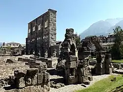 Early inhabitants of the Aosta Valley were Celts and Ligures, whose language heritage remains in some local placenames. Rome conquered the region from the local Salassi around 25 BC and founded Augusta Prætoria Salassorum (modern-day Aosta) to secure the strategic mountain passes, and they went on to build bridges and roads through the mountains. Thus, the name Valle d'Aosta literally means "Valley of Augustus".[14]