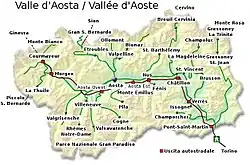 Valle d'Aosta (Italian) Vallée d'Aoste (French) Val d'Aoûta (Arpitan) | |