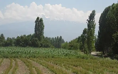 The Ararat Plain makes up 4% of Armenia's total land area, but yields 40% of the country's farm production.[7] In the Turkish part of the plain, apricot is widely produced on a 1,525 ha-area.[8]