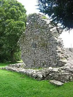 All that remains at Kildemock today is a small ruin, containing the wall that for a reason unknown moved three feet. It is believed to be caused by a storm but this cannot be confirmed.[37]