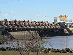 The Argentina–Uruguay border is a line of 579 km marked by the Uruguay River, and is the border between Argentina and Uruguay. It starts in a triple border Argentina-Uruguay-Brazil, at the mouth of the Quaraí River in the Uruguay. The course follows the Uruguay river, passing west of the Uruguayan departments of Artigas, Salto, Paysandu, Rio Negro, Soriano and Colonia and the Argentine provinces of Corrientes, Entre Rios and Buenos Aires,[1] until the confluence of the Uruguay and the Paraná rivers into the Rio de la Plata.