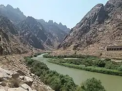 The Armenia–Iran border (Armenian: Հայաստան–Իրան սահման, romanized: Hayastan–Iran sahman, Persian: مرز ارمنستان-ایران) is 44 km (27 mi) in length and runs from the tripoint with Azerbaijan’s Nakhchivan region in the west to the tripoint with Azerbaijan proper in the east.[1] The border was protected by guards of the Russian Federal Security Service from 1992 until 2025.[2][3] The border has been protected by the Armenian Border Guard Service since 2025.[4] On 9 May 2024, Russian Presidential spokesman Dmitry Peskov announced that Russian border guards will continue to serve on Armenia's borders with Iran and Turkey, at the request of the Armenian side.[5] On 8 October 2024, Armenian prime minister's spokesperson Nazeli Baghdasaryan announced that the Armenian border guard troops will participate in protecting Armenia's borders with Iran and Turkey, together with the Russian border guard troops, starting from 1 January 2025.[6]