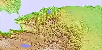 The Arta Mountains, also known as the Great Mountains of Arta (Somali: Buuraha Carta) are a mountain range in Djibouti. They sit at an average elevation of 700 metres (2,300 ft) above sea level, and are the tenth highest point in Djibouti. The mountains lie to the south of the Gulf of Tadjoura, in the Arta Region. They are situated approximately 35 kilometres (21 mi) west of the capital Djibouti City, and 69 kilometres (43 mi) by road from Ali Sabieh.