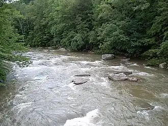 Audra State Park is a West Virginia state park located on 355 acres (1.44 km2)[3] in southwestern Barbour County. It was established around the remnants of an early 19th-century gristmill and the tiny community of Audra. A gristmill spillway is still visible in the river.[4]