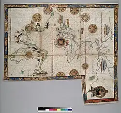 Legends of Terra Australis Incognita—an "unknown land of the South"—date back to Roman times and before, and were commonplace in medieval geography, although not based on any documented knowledge of the continent.[59] Ancient Greek philosopher Aristotle speculated of a large landmass in the southern hemisphere, saying, "Now since there must be a region bearing the same relation to the southern pole as the place we live in bears to our pole...".[60] His ideas were later expanded by Ptolemy (2nd century AD), who believed that the lands of the Northern Hemisphere should be balanced by land in the south. The theory of balancing land has been documented as early as the 5th century on maps by Macrobius, who uses the term Australis on his maps.[61]