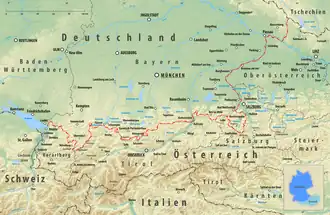 The border between the modern states of Austria and Germany (German: Grenze zwischen Deutschland und Österreich) has a length of 815.9 km (507.0 mi),[1][2] or 817.0 km (507.7 mi)[3] respectively. It is the longest international border of Austria and the tied longest border of Germany with another country (the other one being the border with the Czech Republic, with the same length of 817 km (508 mi)).