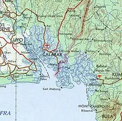 Bakassi is a peninsula on the Gulf of Guinea. It lies between the Cross River estuary, near the city of Calabar and the Rio del Ray estuary on the east. It is governed by Cameroon, following the transfer of sovereignty from neighbouring Nigeria as a result of a judgment by the International Court of Justice.[1] On 22 November 2007, the Nigerian Senate rejected the transfer, since the Greentree Agreement ceding the area to Cameroon was contrary to Section 12(1) of the 1999 Constitution.[2] Regardless, the territory was completely ceded to Cameroon on 14 August 2008, exactly two years after the first part of it was transferred.[3][4]