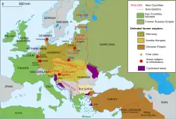 The term (coined in the early 20th century in the aftermath of the collapse of the Ottoman Empire) refers to the division of the Balkan peninsula, which was ruled almost entirely by the Ottoman Empire, into a number of smaller states between 1817 and 1912.[8] It came into common use[5] in the immediate aftermath of the First World War, with reference to the many new states that arose from the collapse of the Austro-Hungarian Empire and the Ottoman Empire.