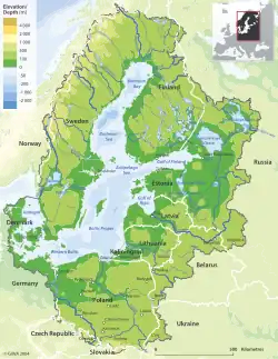| Basin countries | Coastal: Denmark, Estonia, Finland, Germany, Latvia, Lithuania, Poland, Russia, Sweden Non-coastal: Belarus, Czech Republic, Norway, Slovakia, Ukraine[1] |