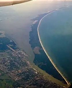 Geographers widely agree that the preferred physical border between the Baltic and North Seas is the Langelandsbælt (the southern part of the Great Belt strait near Langeland) and the Drogden-Sill strait.[6] The Drogden Sill is situated north of Køge Bugt and connects Dragør in the south of Copenhagen to Malmö; it is used by the Øresund Bridge, including the Drogden Tunnel. By this definition, the Danish straits is part of the entrance, but the Bay of Mecklenburg and the Bay of Kiel are parts of the Baltic Sea. Another usual border is the line between Falsterbo, Sweden, and Stevns Klint, Denmark, as this is the southern border of Øresund. It is also the border between the shallow southern Øresund (with a typical depth of 5–10 meters only) and notably deeper water.