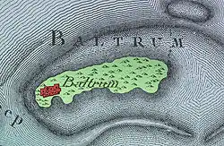 Baltrum (German pronunciation: [ˈbaltʁʊm] ⓘ; Low German: Baltrum) is a barrier island off the coast of East Frisia (German: Ostfriesland), in Germany, and is a municipality in the district of Aurich, Lower Saxony. It is located in-between the chain of the seven inhabited East Frisian Islands. Baltrum is the smallest island in this chain by area and inhabitants. It has a land area of 6.5 square kilometres, and a population in (2011) of just over 500 resident inhabitants.