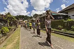 The majority of ethnic groups in Bangli are the Balinese, and Bali Aga tribes. While other ethnicities are fewer, when compared to other districts and cities in the province of Bali. Based on data from Central Bureau of Statistics in Indonesian Population Census 2010, as many as 207,779 people or 96.48% of the 215,353 people of Bangli Regency are of the Balinese ethnic group.[22] Then the Bali Aga as much as 2.18%, and several others such as the Javanese, Sasak, Madurese, and several others ethnic.[22]