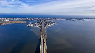 Since the Point Pleasant Canal was built in 1925 connecting the Manasquan Inlet with the Barnegat Bay, the peninsula is technically an island.[3] It is sometimes referred to as Barnegat Beach Island, or more commonly, "the barrier island."