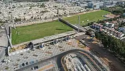 Two railway stations opened in the city in 2011 as part of the new Tel Aviv–Rishon LeZion West line: Bat Yam–Yoseftal railway station and Bat Yam–Komemiyut railway station.[39] Bat Yam is served by the Red Line of the Tel Aviv Light Rail since August 18, 2023,[40] and is planned to be served by the Metro line M3. The city will be the terminus for both lines and the lines will meet at the new Yoseftal Station.