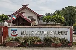 Beaufort (/ˈboʊfərt/ BOH-fərt) is the capital of the Beaufort District in the Interior Division of Sabah, Malaysia. It was named after former British Governor Leicester Paul Beaufort. Its population was estimated to be around 12,742 in 2010.[1] It is about 90 kilometres south of Kota Kinabalu and about 167 kilometres north of Long Pasia (one of the famous tourist attractions in Interior Division). It has shophouses built high above the roads to avoid the periodic floods of the Padas River. The population of Beaufort is composed mainly of Bisaya, Brunei Malays, Kadazan-Dusuns, Lun Bawang/Lun Dayeh, Muruts and Chinese (mainly Hakkas). Bisaya are the majority ethnic, and the population is scattered around the town. Like other towns in Sabah such as Kota Kinabalu city (including Penampang), Tuaran, Papar, Tawau, Kudat and Tenom, Beaufort was one of the major initial Hakka population centres in Sabah and still has a large Hakka minority.