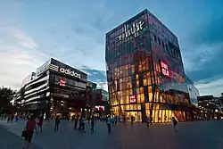 Since the early 1980s, the urban area of Beijing has expanded greatly with the completion of the 2nd Ring Road in 1981 and the subsequent addition of the 3rd, 4th, 5th and 6th ring roads.[73][74] According to one 2005 newspaper report, the newly developed Beijing was one-and-a-half times its previous size.[75] Wangfujing and Xidan have developed into flourishing shopping districts,[76] while Zhongguancun has become a major center of electronics in China.[77] In recent years, the expansion of Beijing has also brought to the forefront some problems of urbanization, such as heavy traffic, poor air quality, the loss of historic neighborhoods, and a significant influx of migrant workers from less-developed rural areas of the country.[78] The city has also been the location of many significant events in recent Chinese history, principally the Tiananmen Square protests of 1989.[79] Beijing has hosted major international sporting events, including the 2008 Summer Olympics, the 2015 World Athletics Championships, and the 2022 Winter Olympics, and is the only city to have hosted both the Winter and Summer Olympics.[80]