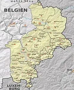 - The westernmost part of the Schnee Eifel (Ommerwald) and the German-speaking area around Sankt Vith