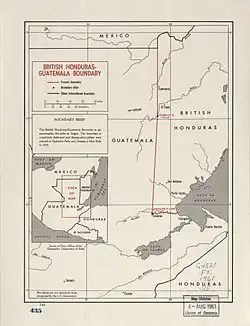 The border between Belize and Guatemala is defined in Article I of the Wyke–Aycinena Treaty of 1859:[1][2]
