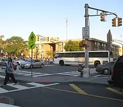 Bergen Square, at the intersection of Bergen Avenue and Academy Street in Jersey City, is in the southwestern part of the much larger Journal Square district.[1][2] A commercial residential area, it contains an eclectic array of architectural styles including 19th-century row houses, Art Deco retail and office buildings, and is the site of the longest continually-used school site in the United States.[3][4][5] Nearby are the Van Wagenen House (sometimes called the Apple Tree House) and Old Bergen Church, two structures from the colonial period. St. George & St. Shenouda Coptic Orthodox Church founded by early Egyptian immigrants was one of the original Coptic congregations in New Jersey.[6]