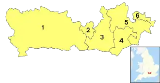 After the 2024 United Kingdom general election, 5 of the elected Members of Parliament (MPs) were Labour, 3 Lib Dem and one conservative.