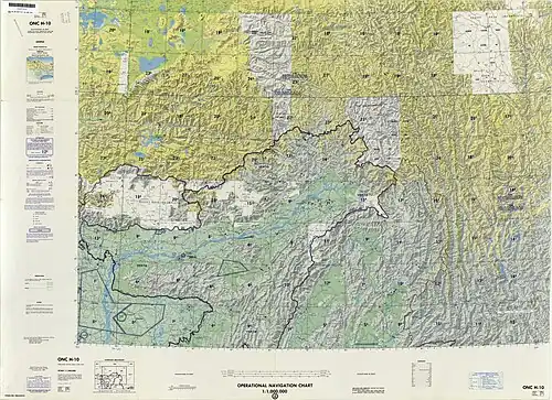 Historical maps of the border area from west to east in the International Map of the World and Operational Navigation Chart, mid-late 20th century:
