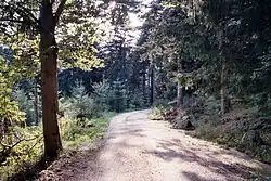 The boundaries drawn were, however, quite varied. In 1931, Robert Gradmann called the Central Black Forest the catchment area of the Kinzig and in the west the section up to the lower Elz and Kinzig tributary of the Gutach.[9] A pragmatic division, which is oriented not just on natural and cultural regions, uses the most important transverse valleys. Based on that, the Central Black Forest is bounded by the Kinzig in the north and the line from Dreisam to Gutach in the south, corresponding to the Bonndorf Graben zone and the course of the present day B 31.