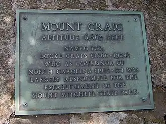 | Mount Craig | 6,647 ft/2,026 m | South-central Blacks | 35.777584, −82.261759 | Locke Craig (1860–1925), North Carolina governor |