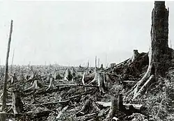 As forests in the north were cut down to meet the growing demand for lumber in the late 19th century, logging firms turned to the virgin forests of Southern Appalachia. Between 1908 and 1912, northern lumber firms, namely Dickey and Campbell (later Perley and Crockett), Brown Brothers, Carolina Spruce, and Champion Fibre, bought up timber rights to most of the Black Mountains and began a series of massive logging operations in the area. In 1911, Dickey and Campbell managed to construct a narrow-gauge railroad line connecting the Swannanoa Valley with Clingmans Peak. Other narrow-gauge lines quickly followed. Between 1909 and 1915, much of the forest on the upper slopes and crest was cut down. An increase in demand for red spruce during World War I led to the rapid deforestation of much of the spruce-fir forest in the higher elevations. As forests were removed, forest fires (caused by the ignition of dried brush and slash left by loggers) and erosion denuded what was left of the landscape.[24]