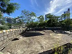 Anti-aircraft guns may have been located at the south side of the hill. Later, four British 25-pound cannons used for ceremonial salute were located in concrete gun emplacements facing Victoria Harbour.[1]