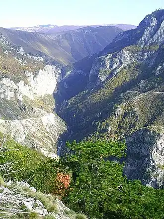 ![]() Terrace, visible on the upper left in the distance, where Blace village is located & Blatačko Lake hanging above the precipice | |