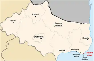 Bolata (Bulgarian: Болата) is a small cove and Nature reserve located in the Northern Bulgarian Black Sea Coast.