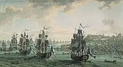 Russian fleet under the command of Admiral Fyodor Ushakov, sailing through the Bosporus